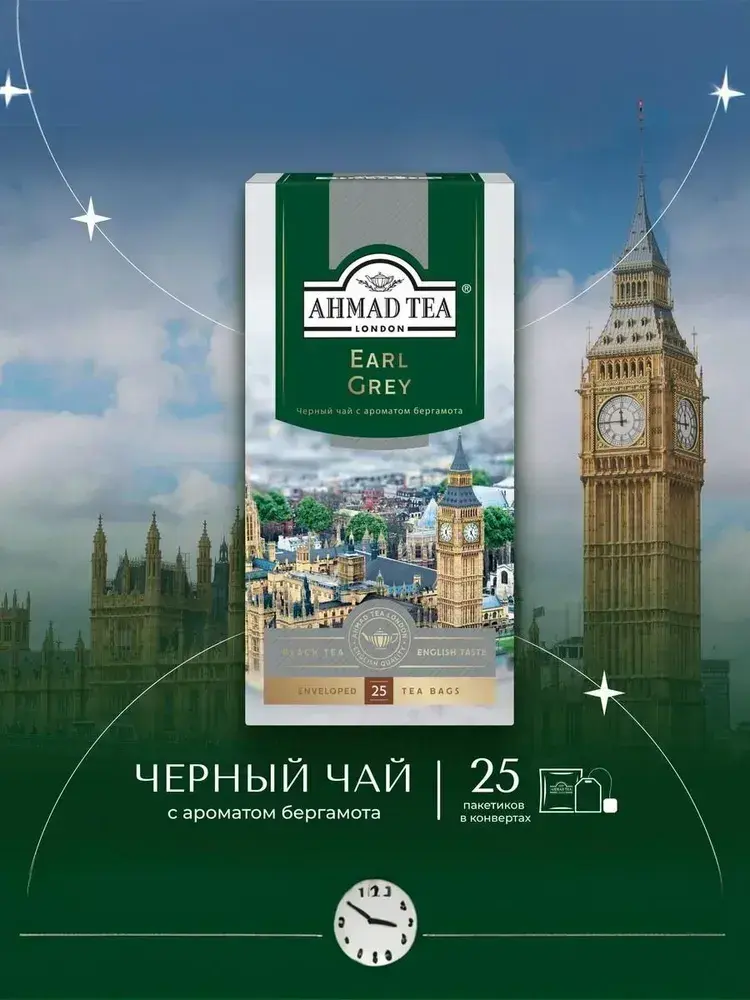Чай в пакетиках чёрный Ahmad Tea Earl Grey, 25 шт