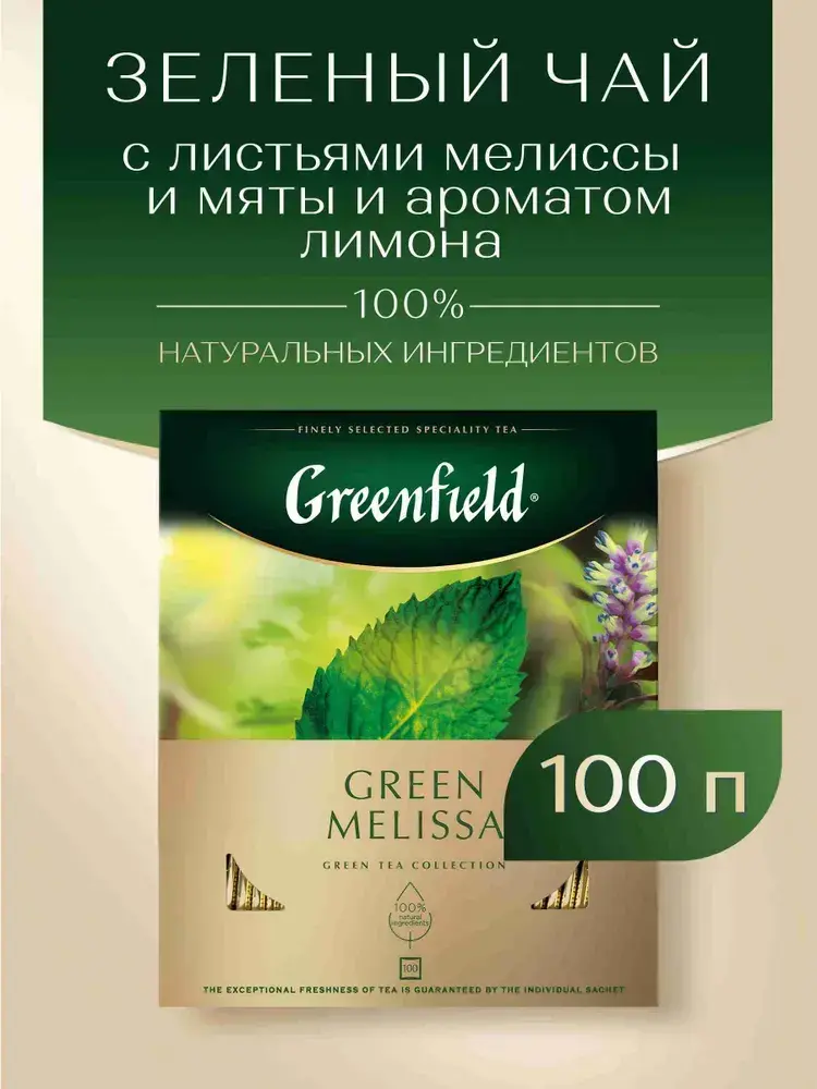 Чай в пакетиках зелёный Greenfield Green Melissa, 100 шт