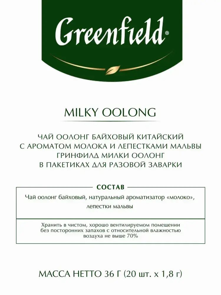 Чай в пирамидках зелёный Greenfield Milky Oolong, 20 шт