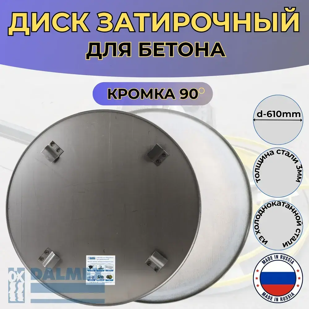 Диск затирочный DALMEX диаметр 610 мм, толщина 3 мм, 4 зацепа — идеальный инструмент для затирки бетона. Изготовлен из высокопрочной холоднокатаной стали, обеспечивает надёжность и долговечность. Благодаря толстой конструкции и четырём зацепам, он легко устанавливается и снимается с затирочной машины. Угол наклона кромки составляет 90 градусов, что гарантирует равномерное распределение смеси и качественную затирку. Наше предприятие оснащено новейшим оборудованием для выпуска затирочных дисков, совместимых с агрегатами таких брендов, как Kreber, Tremix, Atlas Copco, Masalta, Bartel, Dynapac, Enar и т.д.. Продукция оптимально подходит для масштабных строительных работ на крупных объектах. Диски произведенные под брендом DALMEX, проходят строгий выходной контроль качества, а также тестируются на собственном полигоне на соответствие заявленным характеристикам. Наше производство сертифицировано по международной системе менеджмента качества и признано соответствующим требованиям ISO9001.